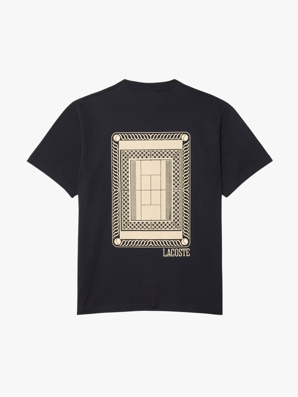- Estampado gráfico de pista de tenis en la parte de atrás