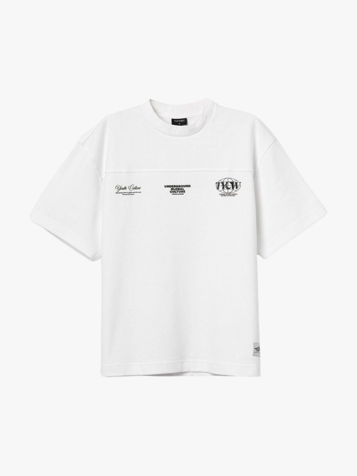 Precio habitual €25,90 Precio de oferta €19,90 Ahorras €6,00Camiseta relaxed fit con logo TYCW en relieve. Cuello redondo y manga corta.
