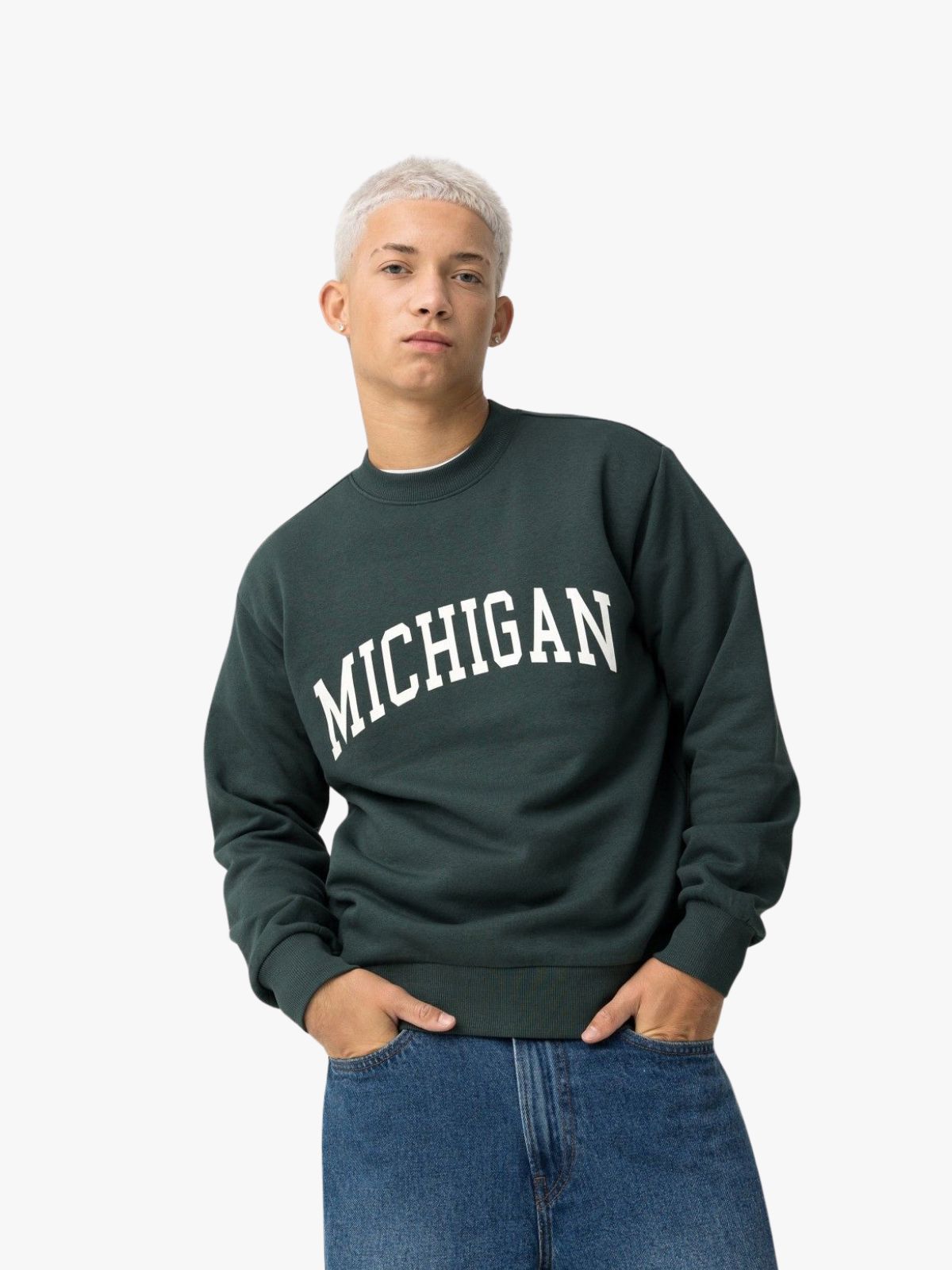Precio habitual €35,90 Precio de oferta €29,90 Ahorras €6,00Sudadera regular fit con mensaje estampado en el frente. Cuello redondo, manga larga y acabados en canalé. Interior perchado.
